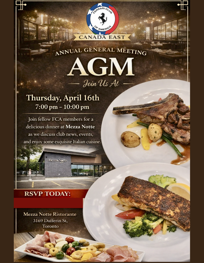 We've planned several events for 2026. These include an opportunity to visit an amazing private collection during the Regional kickoff event being held this year in Montreal, our AGM in early May, the Europa Adventure Drive, Concours Event, numerous drives, our Fall tour, Bernacci's Drive, and many "Cavallinos n' Coffee" event dates.